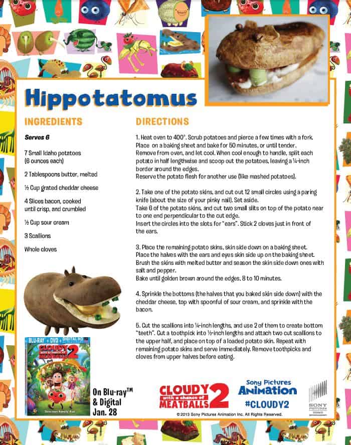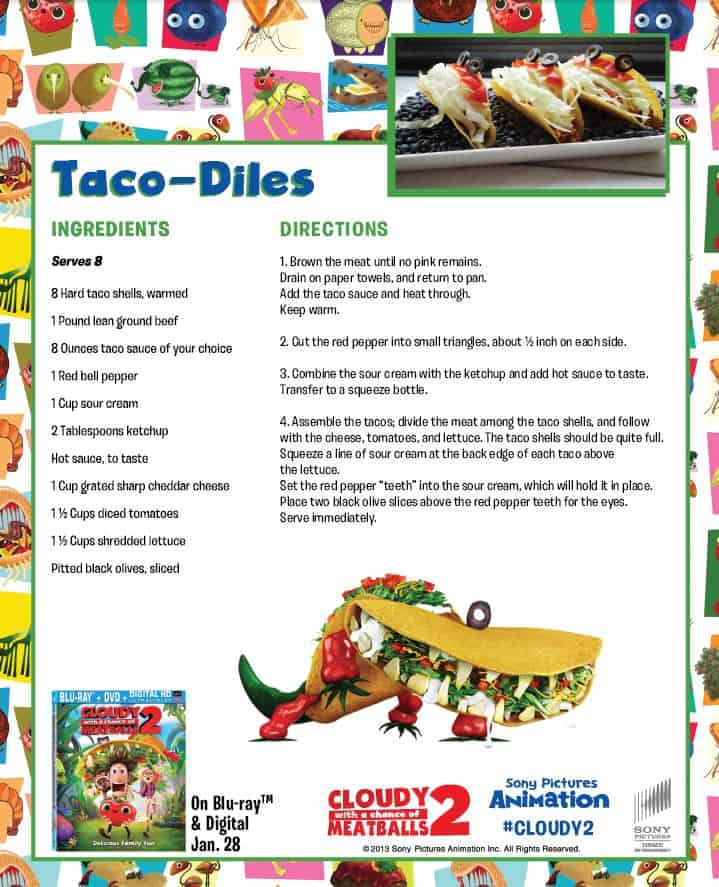 We loved Sony’s Cloudy With a Chance of Meatballs. It’s been a while since we watched it, but when Cloudy With a Chance of Meatballs 2 came out in the theater, my youngest was asking to see it. With all that was going on and just settling into the house, we never made it. He was bummed but I promised him we’d get it when it came out on DVD, so when I showed him the movie yesterday, he was beyond thrilled. We couldn’t get through dinner fast enough!