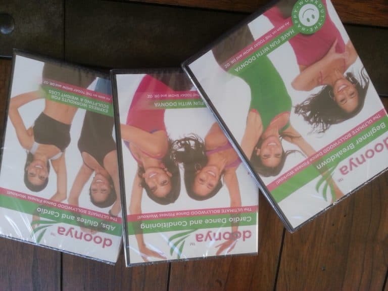 One of the steps I take that gets me going in the right direction? Finding workouts that I enjoy, and that’s where Doonya comes in. I like to dance, I like to move and I like a workout that gets my whole body in motion. I’m not a good dancer though, so I’m hesitant to go take classes in public. Where people can see me trip and move like a moose. Add in a busy schedule of working full-time, getting kids back and forth to school and work and then regular house stuff, and it’s even harder to get to a gym so if I can run into my room, throw on a workout outfit and pop a DVD into the laptop or DVD player, I’m much more likely to get a workout in without excuses. And if it’s a fun workout? It whizzes by and I look forward to doing it again.