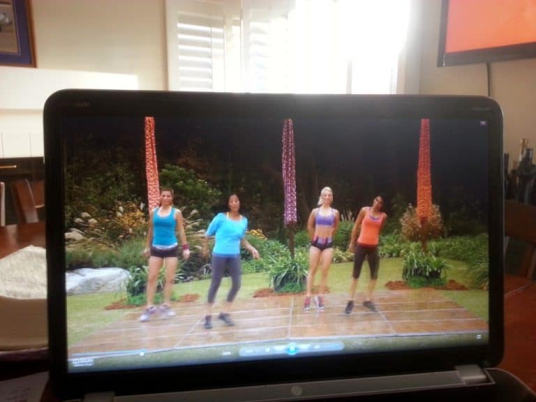 The first time I did the Beginner’s Breakdown, I didn’t get sore, but when I started DVD 2 and 3, I began to feel the muscles in various areas. My thighs and calves on day 4 were screaming, but in a good way! Now I’m hooked! My daughter enjoys it and because I can do it on the laptop as well as the wide-open area behind my couch, I sometimes do it on my lunch hour. When I have more time, I do longer combinations.