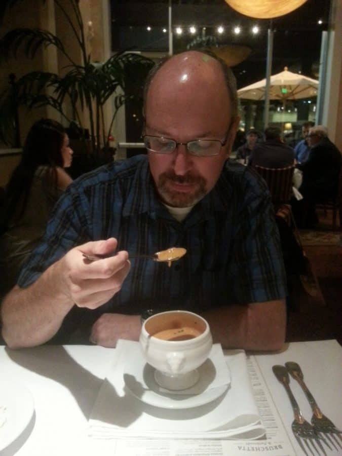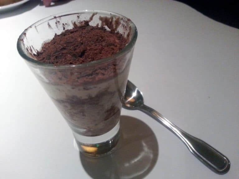 While they had so many delicious-looking options, I chose my favorite dessert ever, Tiramisu, and he got the Mascarpone Cheesecake. I am all over Tiramisu but his cheesecake was so amazing, I almost traded. He wasn’t having any of that. (It might have been that he was too busy laughing that I’d breathed up a healthy dose of cocoa powder on my first bite of the Tiramisu and coughed for a couple of minutes.)