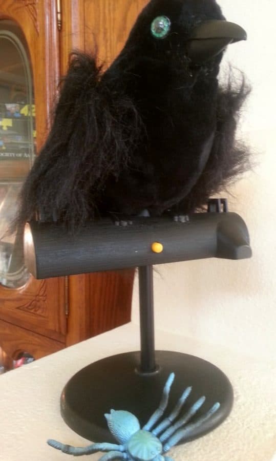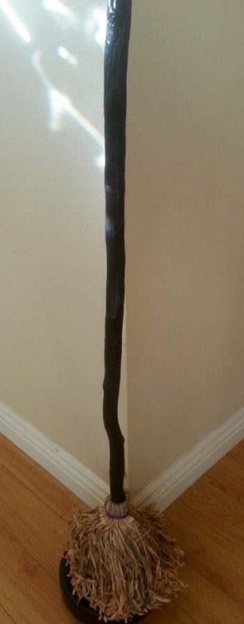 This is witchy’s broom…though it is far taller than her. It is magic and roams all around the house on its own, changing direction on a whim and spouting off scary topics and laughs. Love it. Dogs? Not so much.