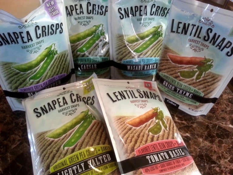 Harvest Snaps are available in two vegetable types, Snapea Crisps and Lentil Snaps. The Snapea Crisps are made 70% from naturally dried peas, while Lentil Snaps are made from 65% lentil. They’re baked, not fried, and available in a wide variety of flavors so that no matter what flavors you like, you’re sure to find one you want to munch on. The Snapea Crisps flavors are Lightly Salted, Caesar, Black Pepper and Wasabi Ranch. The Lentil Snaps are available in Tomato Basil and Onion Thyme.