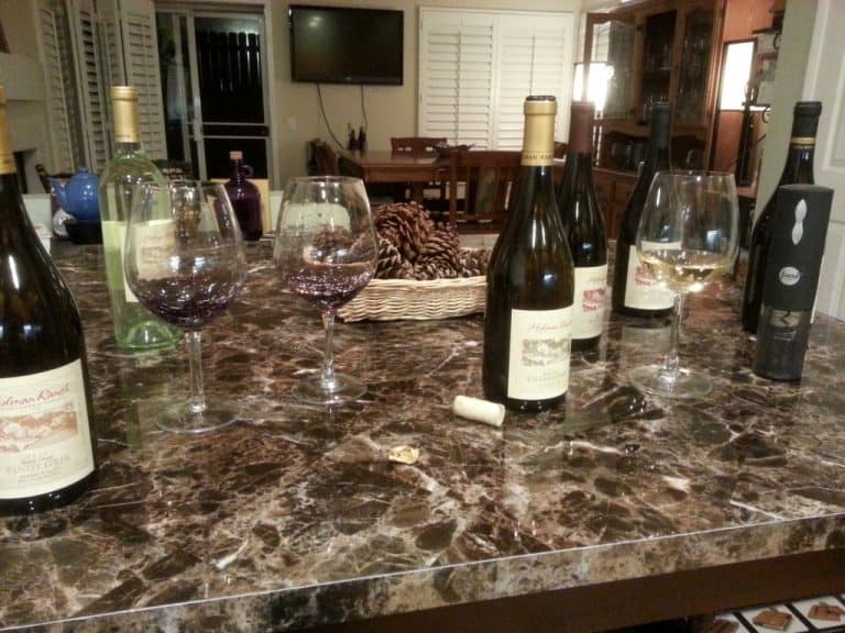 We gathered a few people, got out the glasses and had a tasting in the kitchen, complete with some crackers and mild cheese. What a blast to have such a wide array of varietals to try! We’ve done a lot of tastings throughout the years, most in an actual winery, so we know how to go about it the right way. It was a lot of fun to host Holman Ranch wine tasting in our own kitchen and was the first official tasting we’d ever done here in the new house.