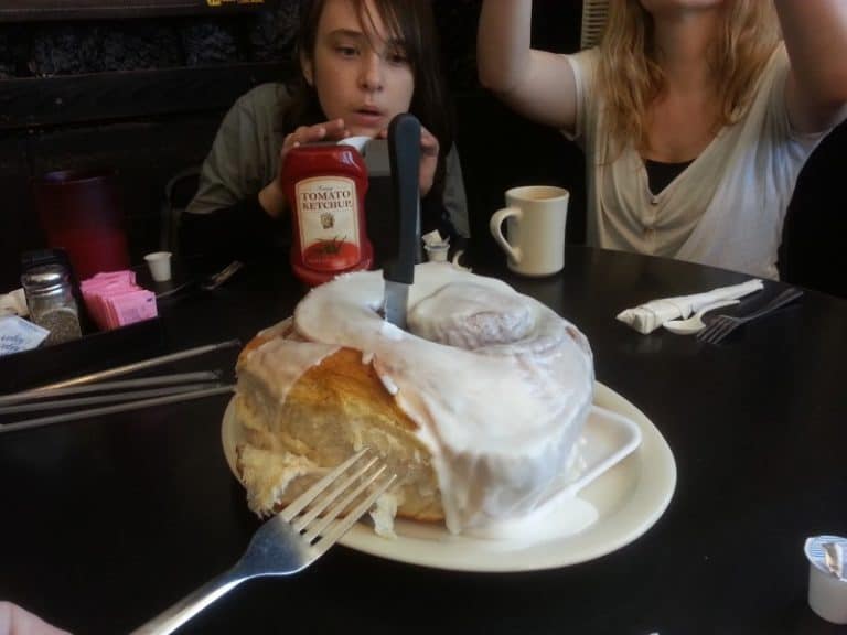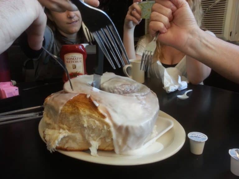 That must have been fun experimenting in the kitchen then deciding, hey, let’s sell the three-pound roll! Yeah, let’s do it! SO glad they did! It was awesome, and I’m not a huge cinnamon fan but I’d go back in a flash. Did you get a cinnamon roll fix yet?? 😉