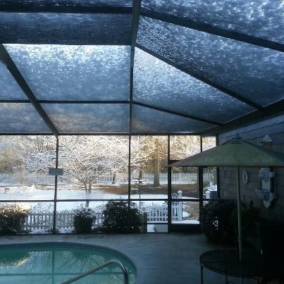 I didn’t venture out on Sunday morning but I did open the french doors to take this picture of my screened-in pool porch.