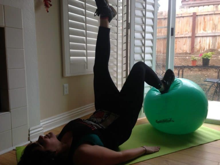This is the Single-Leg Hamstring Curl on the Ball. Probably the hardest exercise in this phase! Really gotta hold yourself tight to prevent the ball from rolling.
