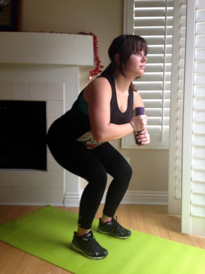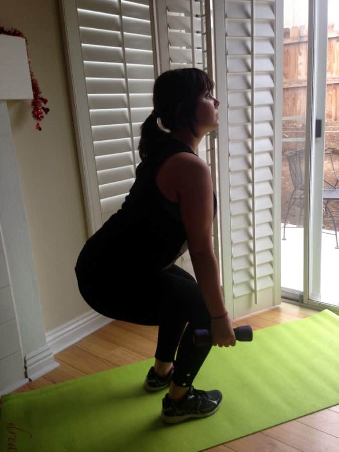 Bodyweight Squat, with the dumbbell variation to add a little challenge.
