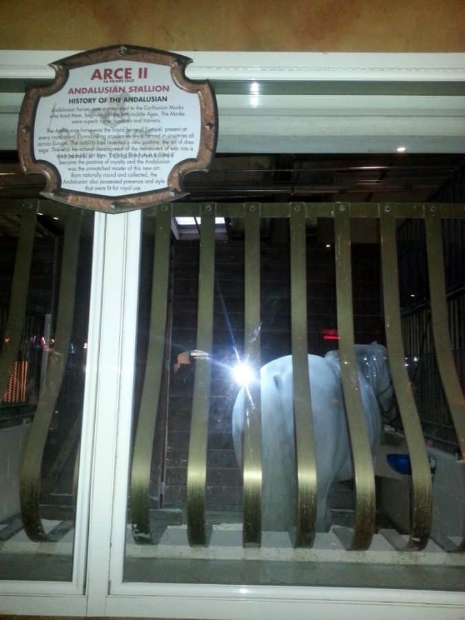 The horses…there’s no way around it, they are beautiful. You can’t help but be in awe of their skills and amazing talent. Our favorite is pictured below; I’ll let you guess why we chose this one. (Hint: read the sign on his stall gate. That horse has got to have one heck of a sense of humor.)