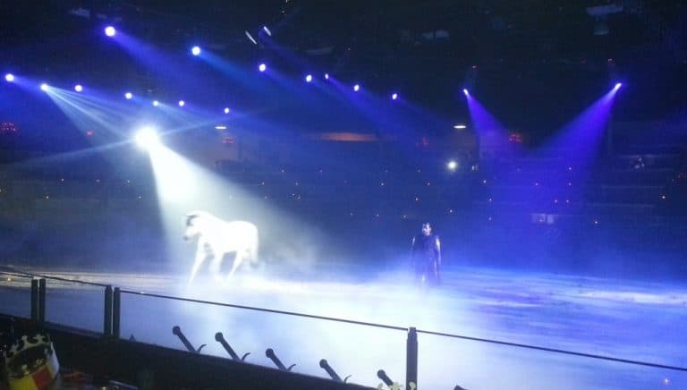 The show was nothing short of amazing. So many lights, beautiful effects, and horses dancing and running and leaping. A favorite of ours was when the white horse jumps in the air, kicking out his back legs. So graceful!