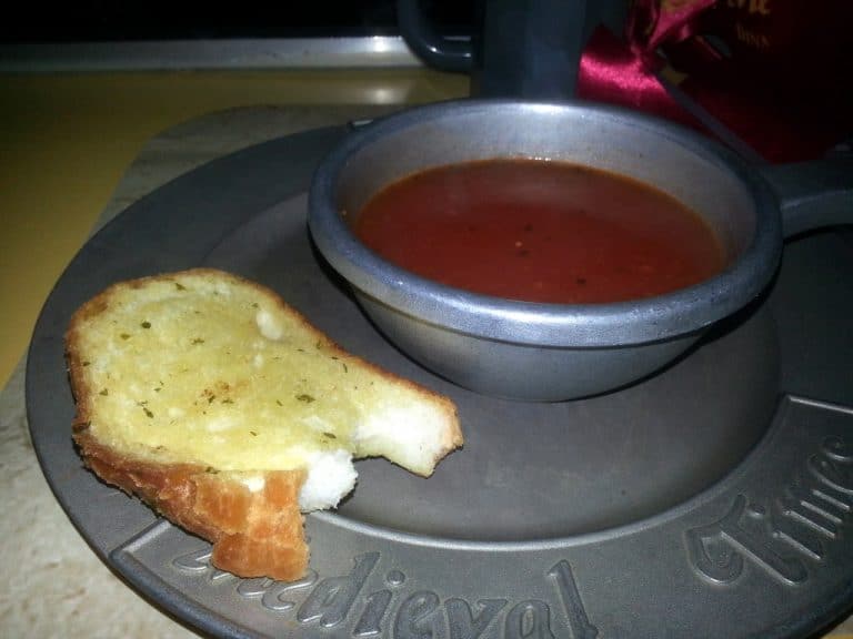The meal was delicious, exactly what we’d have pictured for that time period. Tomato bisque (in a pewter bowl with a handle) and crusty, crispy garlic bread. I could have eaten at least five more pieces without a crumb left. Dinner with a show is so not to be missed. Later, we were brought a half of a whole chicken — so moist with yummy skin — and a rib, along with a half of a baked potato. More finger-food! The dessert, a pastry, was devoured, even though we were already food and had put most of our chicken in the supplied to-go boxes for the next day. (Let’s just say, I didn’t get to eat my chicken..little man got to both first! #leftoverfail)