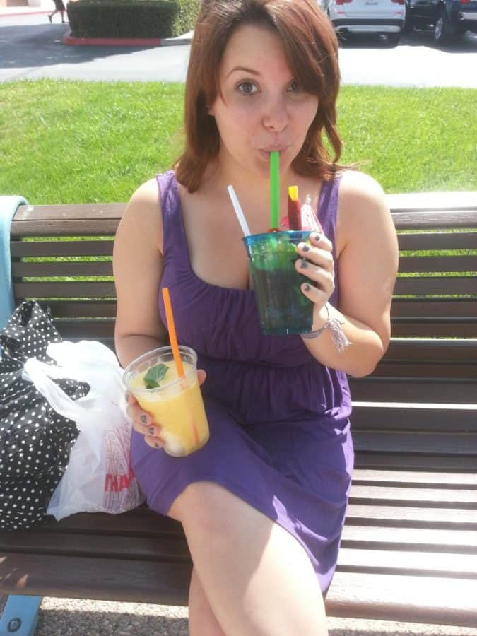 DD thinks so, as she shows you below, enjoying her drink, too. She got the ChaMango.
