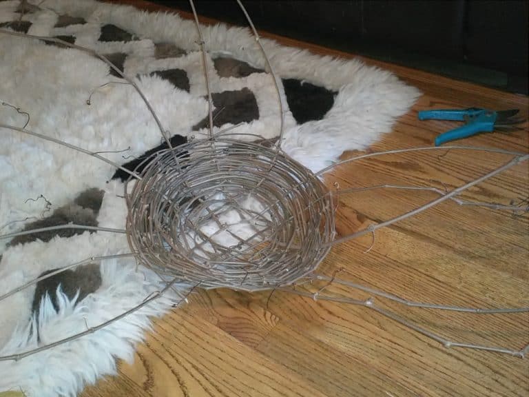So yesterday found us out in the south 40, clippers in hand, gathering long sections of vines from the tall tree branches. Two piles later, we sat down on the grass and began to read the directions. While we should have really perused them better earlier, if we had, I may have been intimidated. Four pages long! I’m more of a ‘get the general idea and go from there’ kinda person, so I wasn’t too bugged when the wind blew the directions away.
